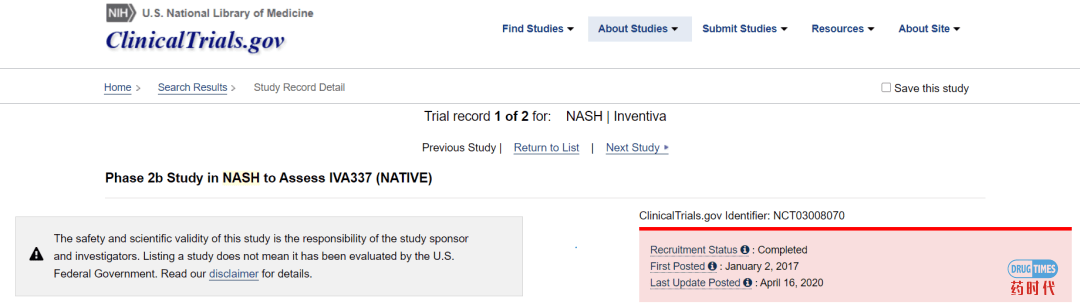 5、https://clinicaltrials.gov/ct2/show/NCT03008070?cond=NASH&spons=Inventiva&draw=2&rank=1