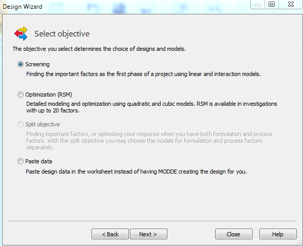跟“Design expert”很类似。筛选设计、优化设计、还可以进行历史数据分析。我们选择“Screening”。