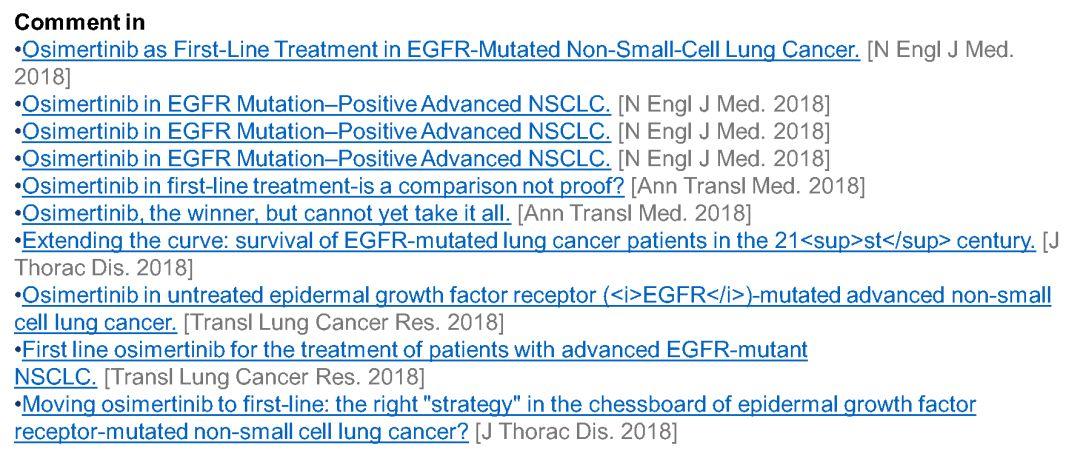 对Osimertinib一线数据发表评论的文章今年短时间内就超过10篇,其中发表在新英格兰杂志上的就有4篇。