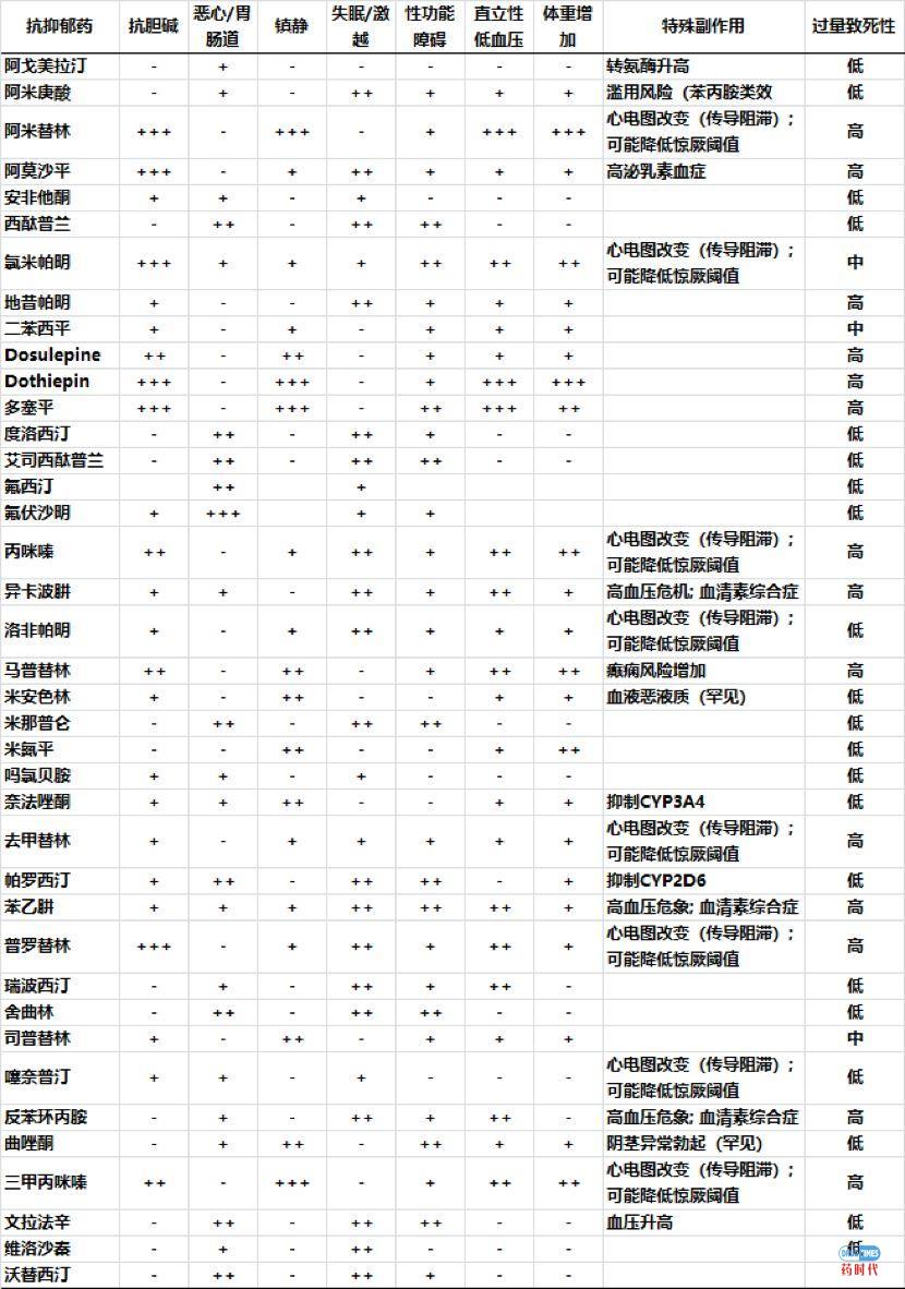 数据源于:WIND医药数据库样本医院销售数据。上图中标红的一线推荐药物占了销售总额的86%,以5-羟色胺、去甲肾上腺素为治疗靶点。2017年4月3日世界生物精神病学会联合会(WFSBP)发布的单相抑郁障碍药物治疗指南总结显示抗抑郁药物列表如下:抗抑郁药物副作用如下:注:副作用强度类别:+++(风险高/强),++(中),+(低/弱),-(很低/无),空白(本指南未标注)。抗抑郁药的这些副作用特征并不全面,仅用于粗略比较。抗胆碱症状主要包括口干、泌汗、视物模糊、便秘、尿潴留等。总结以上药品信息,主要治疗靶点:5-羟色胺、去甲肾上腺素、多巴胺。常见不良反应为:体重增加、性功能障碍、撤药反应、5-HT综合征等。起效时间一般在2周左右。上表未包括2019年3月19日获美国FDA批准上市的别孕烯醇酮(Zulresso,静脉注射剂)。别孕烯醇酮作为γ-氨基丁酸A型受体调节剂。是第一个获FDA批准的产后抑郁症治疗药物。2019年3月5日获FDA批准上市的艾氯胺酮(Spravato,鼻喷剂)。是过去30多年来首个具有新作用机制的抗抑郁症药物,此非竞争性和亚型非选择性活动依赖性N-甲基-D-天冬氨酸受体拮抗剂,在多巴胺转运抑制中有八倍效力。但由于该药为氯胺酮的异构体,其是在争议中获批的,有人持反对态度,担心艾氯胺酮是否会被滥用以及是否会出现意想不到的副作用。心理治疗因为药品的副作用及起效时间等不尽人意,抗抑郁药品开发领域还是有很大潜力。与此同时抑郁症的心理治疗因为越来越多的研究表明心理治疗是有效的,在持续创新、研究和推广中。2015年5月16日国际认知治疗协会的前主席、加拿大卡尔加里大学心理系Keith S Dobson博士在第五届亚洲认知行为治疗大会暨第四届中国认知行为治疗学术年会上分享的“认知行为疗法(CBT)治疗抑郁症如何从研究走向实践以及未来的发展方向”展示出,认知行为治疗在很大程度上是在美国、英国、加拿大等西方国家发展成型并得到了检验,认知行为治疗有效;甚至有研究显示认知行为治疗优于药物治疗组并引起很大震动;认知行为治疗与药物联用效果优于药物治疗,且复发率相比药物治疗和安慰剂组显著更低。2018年剑桥大学出版社在线出版的T. Munder等人研究的“心理疗法有效吗?对抑郁症治疗的再分析”成果如下图所示:抑郁症心理干预的效果大小
