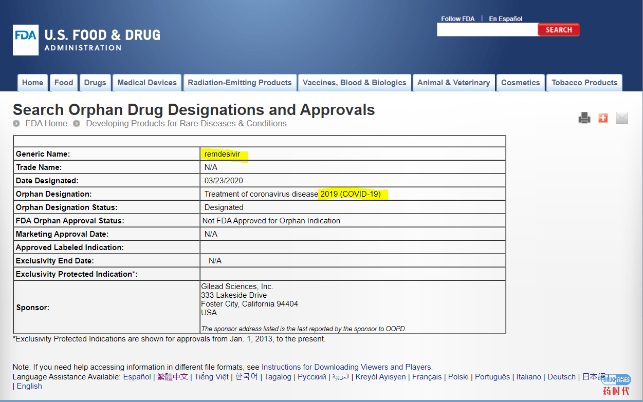 2、【快报】瑞德西韦刚刚获得治疗新冠肺炎孤儿药认证。