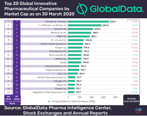 (2)GlobalData sees mild reversal in fortune for top 20 global innovative pharma companies by market capitalization in Q1 2020