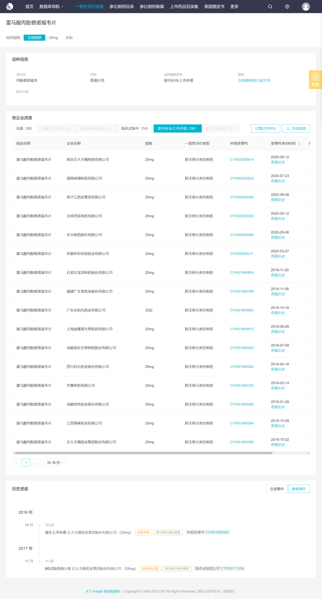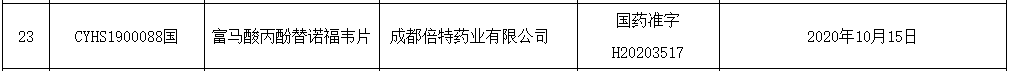 2020年10 月 19 日,NMPA 发布批件,成都倍特 4 类仿制药「富马酸丙酚替诺福韦片」获批上市,同时视同通过一致性评价,成为国内首仿。