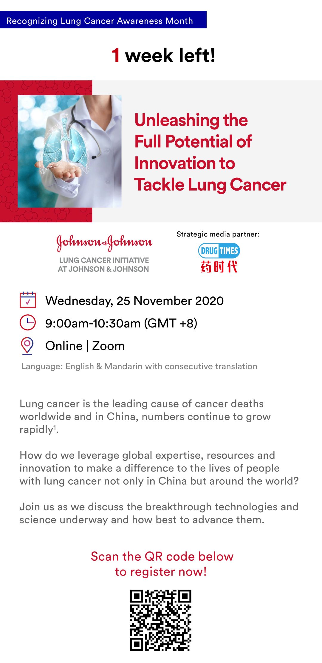 明天早上9点!我们一起聊聊肺癌挑战与治疗的最新进展 2020年11月24日 03:01 • 精彩活动 浏览量 686 Swipe Left For English 点击直达直播间! 发布者:药时代,转载请首先联系contact@drugtimes.cn获得授权 打赏 为好文打赏 支持药时代 共创新未来! 0 生成海报 新冠疫情下的华人之光!——热烈祝贺OncoImmune与默沙东达成4.25亿美元收购协议 上一篇 2020年11月24日 02:59 NCI科学家阐述肿瘤治疗特殊反应者产生的分子基础,为精准治疗提供新线索 下一篇 2020年11月24日 03:02 相关推荐 精彩活动 药时代直播间33期 | 谢雨礼博士:RNA药物王者归来——生物科技的下个十年 2020年4月22日 线下活动 高朋满座,大咖云集!快看看都有哪些嘉宾出席2022第三届中国新药CMC高峰论坛! 2022年10月12日 更多作者 中国首秀!我们一起向Peter Baker先生学习数据可靠性! 2019年8月18日 精彩活动 我和我的IND | 10月9日晚7:30正式与您见面! 2020年10月6日 推荐活动 倒计时4天!第八届中国医药研发•创新峰会 2023年6月13日 精彩活动 思南峰会系列分享之“疫苗竞赛” 2020年12月8日