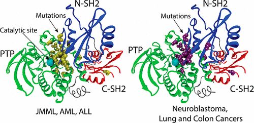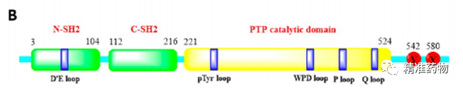 补充:激活SHP2构象含有pTyr的蛋白质主要包含三类:免疫抑制受体,支架蛋白(Grb2相关的结合蛋白[Gabs],成纤维细胞生长因子受体底物[FRS],胰岛素 受体底物[IRS])和受体(受体酪氨酸激酶[RTKs],细胞因子受体)。【European Journal of Medicinal Chemistry,Volume 190,2020,112117,ISSN 0223-5234.】