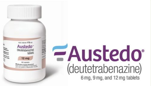 氘代丁苯那嗪片(Deutetrabenazine)是以色列梯瓦(TEVA)工业制药有限公司研制,最早于2017年4月3日,被FDA批准上市,用以治疗亨廷顿症有关的舞蹈病和成人迟发性运动障碍的一种药物。AustedoTM是一种靶向囊泡单胺转运体2(VMAT2)的小分子口服抑制剂,VMAT2在人体中主要负责调节多巴胺、肾上腺素、去甲肾上腺素的水平。氘代丁苯那嗪是丁苯那嗪(tetrabenazine)氘代后的产物,其半衰期明显延长,药物代谢动力学特征得到了明显改善,只需更少的剂量就以达到预期治疗效果。