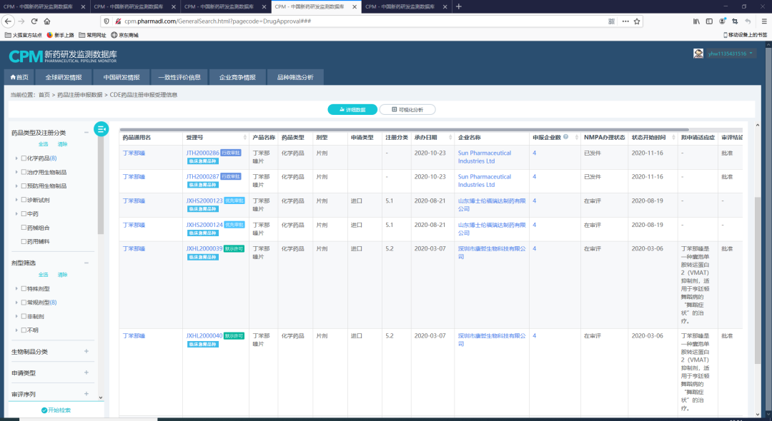 CPM数据库显示我国众多企业已经完成仿制药申请