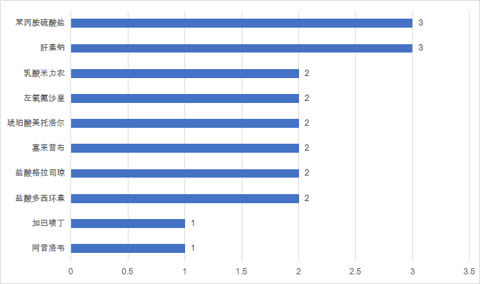 中国药企 2020年度,中国药企继续保持在FDA获批上市的良好态势,其中复星医药旗下的GLAND PHARMA LTD通过了18个ANDA的上市批准,取得中国药企在FDA获批数量的第一名。GLAND PHARMA LTD位于印度海德拉巴,是一家国际化并拥有原研药及制剂研发生产能力成熟规范的仿制药注射剂龙头企业,产品主要售向美国,2017年9月被复星医药收购。 图五 2020年度中国药企主要在FDA上市的品种排行(前十) 除复星医药之外,EPIC PHARMA LLC(人福美国)、YUNG SHIN PHARM(中国台湾永信药业)、MEITHEAL(南京健友)等企业也不甘落后,陆续有多款药物在FDA上市。2020年中国药企在FDA上市的药品剂型中,数量最多的仍然是注射剂达到41%,同比增长8.5%,其次片剂为27%,同比下降8%,胶囊剂11%,保持均衡。 热门检索:对乙酰氨基酚和阿奇霉素 根据药智企业版大数据分析系统:对乙酰氨基酚和阿奇霉素成为2020年企业版用户在检索美国FDA上市药品数据库中最热门的检索关键词。 <对乙酰氨基酚> 又名扑热息痛,属于乙酰苯胺类解热镇痛药,通过抑制下丘脑体温调节中枢前列腺素的合成起到解热作用,阻断痛觉神经末梢的冲动而产生镇痛作用。1878年由Morse首次合成,1893年由VonMering首先用于临床,在美国1955年就成为非处方药,2020年度FDA共计批准了10款活性成分中含有对乙酰氨基酚的药物。 表二 2020年度FDA批准对含乙酰氨基酚的药物 (按照申请机构浏览) <阿奇霉素> 常作为青霉素类的替代治疗药物,可用于治疗支气管炎,呼吸道感染,生殖器感染等症状,1980年克罗地亚制药公司Pliva最早发现了阿奇霉素,1981年获专利保护。2020年度FDA共计批准了4款活性成分中含有阿奇霉素的药物,其中一款药物为中国台湾药企YUNG SHIN PHARM(永信药业)所持有。 表三 2020年度FDA批准阿奇霉素的药物 (按照申请机构浏览) 2020年FDA批准新药销售额预估(前十) 2020年对制药行业来说是多事之年,世界各地的制药公司正以狂热的速度寻找治疗新冠肺炎的方法或疫苗。通过整合药智企业版美国上市以及相关公司官网数据提供了去年经FDA批准的药物市场销售额预估情况。 表四 按照销售额预估从高到低选取前十 吉利德公司于去年十月份获得FDA批准的广谱抗病毒药物瑞德西韦用于治疗新冠病毒,且具有一定疗效,因而斩获了2020年度FDA批准药物销售榜首。 数据来源:药智美国上市药品数据库、药智孤儿药与罕见病数据库、 Drugs@FDA