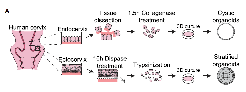宫颈癌是常见的妇科恶性肿瘤,通常由人乳头瘤病毒(HPV)感染引起。据世界卫生组织国际癌症署(IARC)发布了2020年全球最新癌症负担数据,宫颈癌是2020年全世界女性新发病例数第六的癌症,也是中国2020年女性新发病例数第六的癌症。然而,目前还没有研究人类宫颈组织的良好模型。