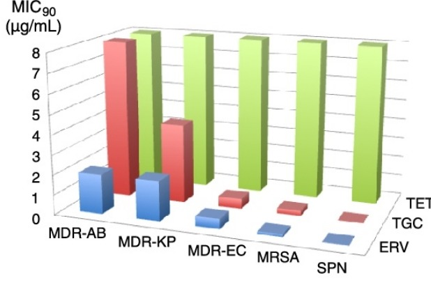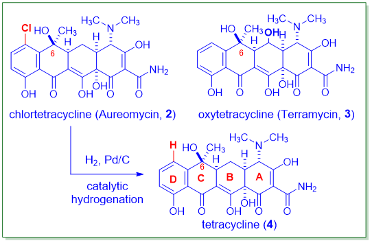“四环素抗生素在20世纪40年代开始使用。近80年来,许多细菌病原体普遍对四环素产生耐药性。幸运的是,Tetraphase Pharmaceuticals研发的一种完全合成的四环素抗生素Eravacycline(Xerava,1)于2018年获得FDA批准。与现有的其他四环素相比,它具有超强的效力,是对抗细菌感染“武器库”中的一大补充。”