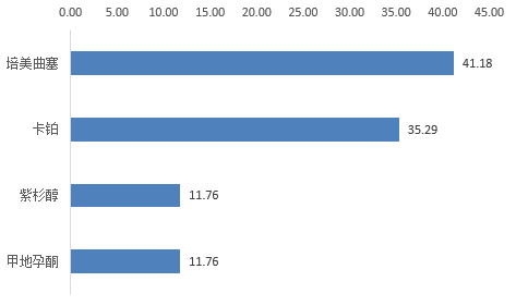 图4 纳武利尤单抗与各抗癌药联用的处方数占比(%)