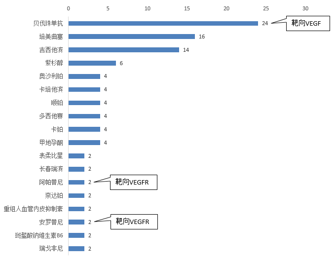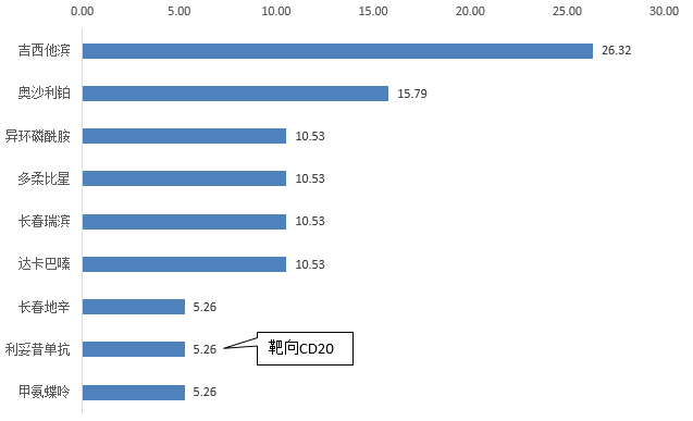 图2 处方中与PD-1/PD-L1单抗联用的抗癌药靶点分布
