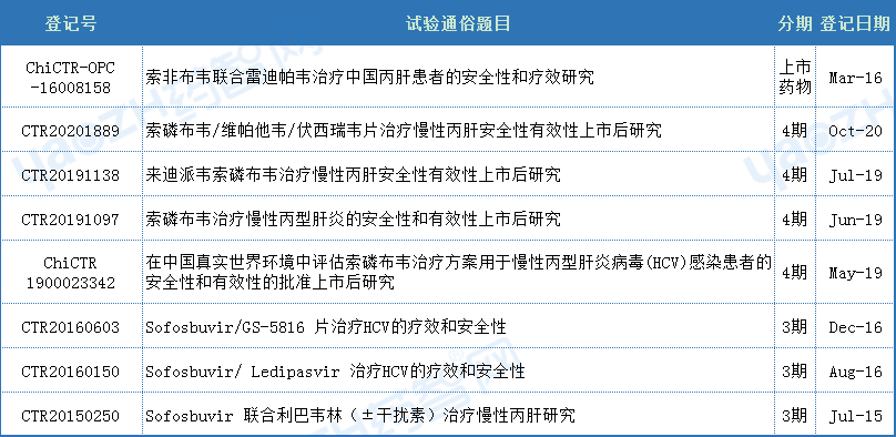 表2 替诺福韦艾拉酚胺高阶段临床试验(中国)