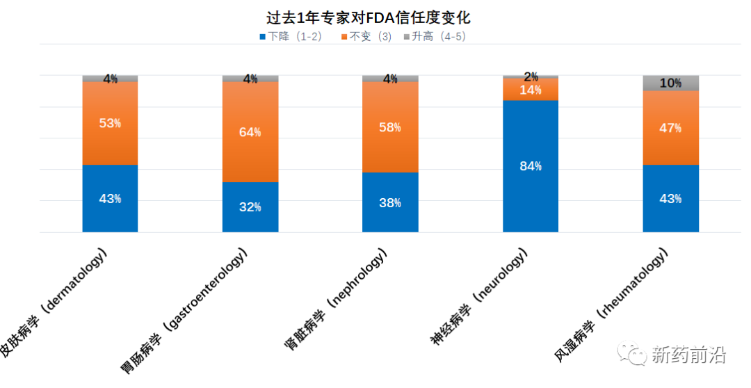 Spherix Global Insights于7月25日对252名皮肤病学(dermatology)、胃肠病学(gastroenterology)、肾脏病学(nephrology)、神经病学(neurology)和风湿病学(rheumatology)的专家进行的调查显示,医生们对FDA的信心正在迅速下降。
