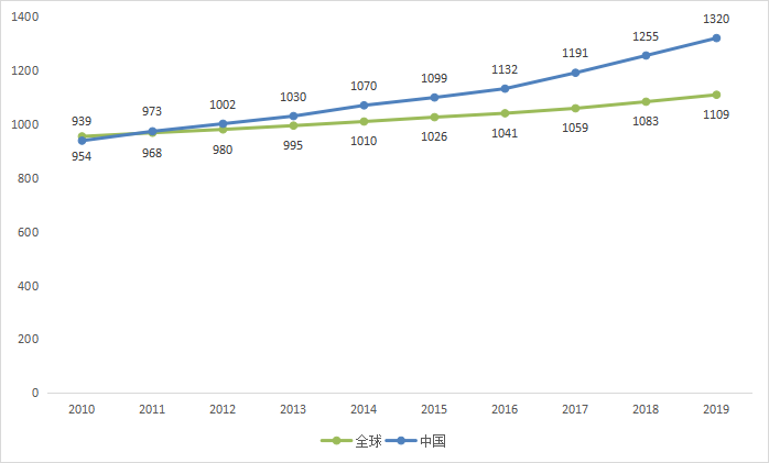 图4 全球及中国所有癌症患病率(例/十万人)