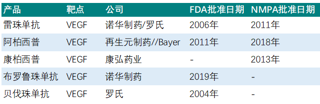 此外,也越来越多抗体药物采用抗VEGF双靶点机制: