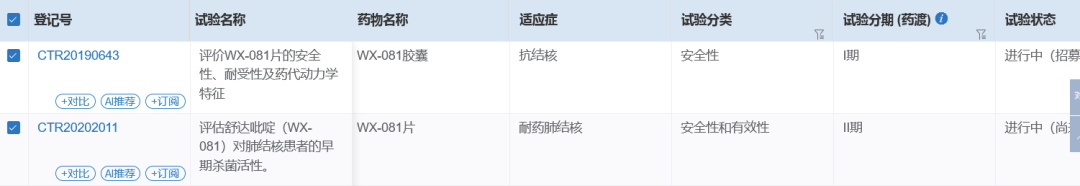 吡法齐明国内临床进展 (数据来源:药渡数据)