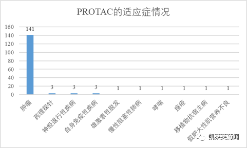 在适应症上,除多数集中在治疗肿瘤外,少数还用于药理探针、神经退行性疾病、自身免疫性疾病、脱发、慢性阻塞性肺疾病、哮喘等疾病。