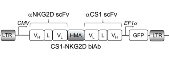 有研究者构建了同时靶向CS1和NKG2D的双特异抗体,并且在体内外实验中都展现了良好的效果。