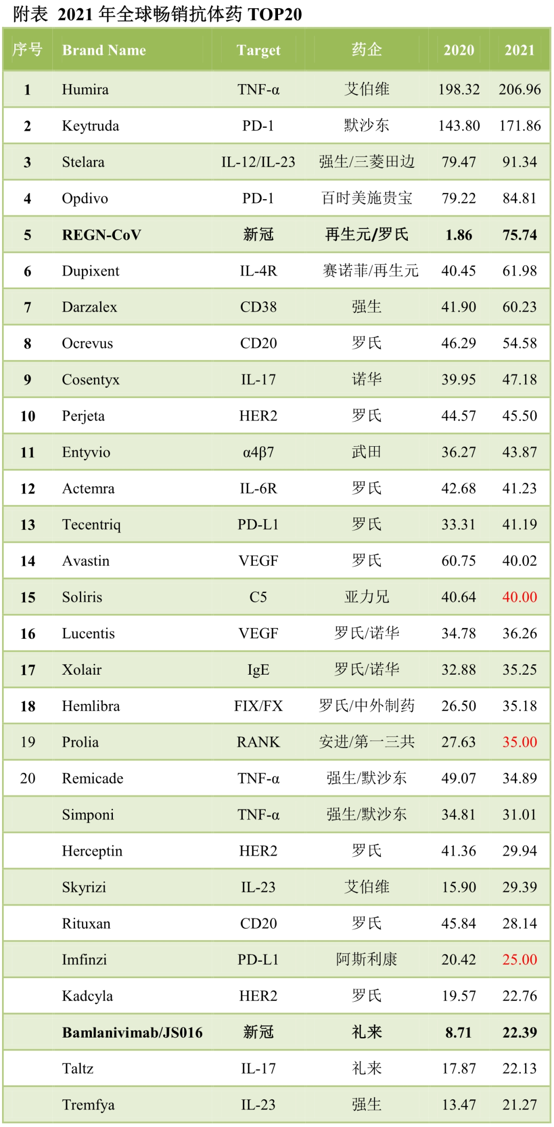 随着各大药企2021年财报的陆续披露,抗体药物的市场格局也逐渐清晰,前20大畅销抗体药物合计销售额1283亿美元。