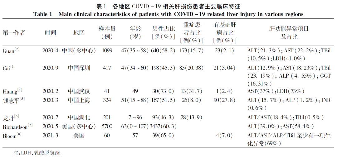 1COVID-19相关肝损伤流行病学及临床特征