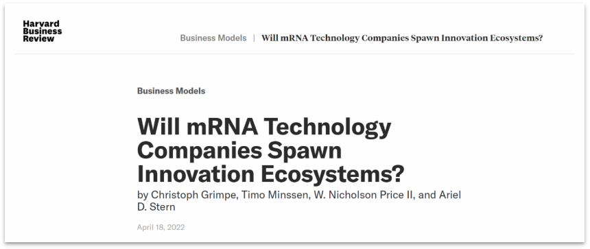 1. https://hbr.org/2022/04/will-mrna-technology-companies-spawn-innovation-ecosystems