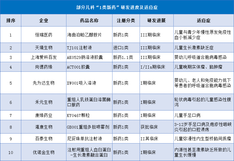 据人民日报健康客户端不完全统计,目前国内有超过40款儿科新药处于获批临床及以上阶段,其中12款为1类新药。