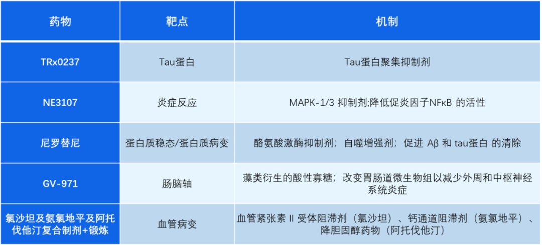 剩余10种AD临床III期药物则是基于改善神经精神症状(5种)与增强认知功能(5种)。它们与AD病因没有必然联系,其中9种药物均作用于神经递质受体,包括Sigma-1 受体激动剂、NMDA 受体拮抗剂、多巴胺D2 受体部分激动剂、血清素再摄取抑制剂、合成大麻素、乙酰胆碱酯酶抑制剂、Alpha-2 肾上腺素能激动剂、腺苷拮抗剂以及非选择性磷酸二酯酶抑制剂。总之,现有6种药物用于治疗AD,包括五种已在临床得到广泛应用的经典药物,即多奈哌齐(donepezil)、加兰他敏(Galantamine)、卡巴拉汀(rivastigmine)、美金刚(memantine)以及美金刚-多奈哌齐复合制剂;FDA新批的阿杜卡单抗(Aducanumab)在带来新的市场刺激的同时,也引发较为强烈的争议以及对后续治疗效果的关注。此外,现有的31种临床III期在研药物,82种临床II期和31种临床I期药物均展示着AD治疗领域的持续迭代与竞争。参考资料[1] Nat Rev Dis Primers . 2021 May 13;7(1):33. doi: 10.1038/s41572-021-00269-y. Alzheimer disease David S Knopman, Helene Amieva, Ronald C Petersen, Gäel Chételat, David M Holtzman, Bradley T Hyman, Ralph A Nixon, David T Jones[2] Dela J Public Health . 2021 Sep 27;7(4):74-85. doi: 10.32481/djph.2021.09.009. eCollection 2021 Sep. Diagnosis and Treatment of Alzheimer’s Disease:: An Update Emily Bomasang-Layno, Rachel Bronsther[3] How Is Alzheimer’s Disease Treated? https://www.nia.nih.gov/health/how-alzheimers-disease-treated[4] Alzheimers Dement (N Y). 2022; 8(1): e12295. Published online 2022 May 4. doi: 10.1002/trc2.12295 Alzheimer’s disease drug development pipeline: 2022 Jeffrey Cummings, Garam Lee, Pouyan Nahed, Mina Esmail Zadeh Nojoo Kambar, Kate Zhong, Jorge Fonseca, and Kazem Taghva[5] Nature . 2021 Jun;594(7863):309-310. doi: 10.1038/d41586-021-01546-2. Landmark Alzheimer’s drug approval confounds research community Asher Mullard版权声明/免责声明 本文为原创文章,版权归拥有者。仅供感兴趣的个人谨慎参考,非商用,非医用、非投资用。欢迎朋友们批评指正!衷心感谢!文中图片、视频为授权正版作品,或来自微信公共图片库,或取自公司官网/网络根据CC0协议使用,版权归拥有者。任何问题,请与我们联系(电话:13651980212。微信:27674131。邮箱:contact@drugtimes.cn)。衷心感谢!
