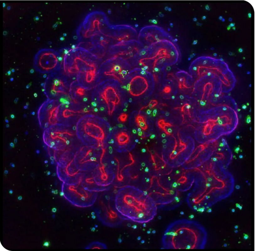 通过高内涵成像技术,我们可以对类器官这种3D细胞模型进行逐层扫描,再将每层的照片叠加为3D成像图片,就可以了解到完整的类器官的细胞和蛋白定位信息,观测类器官里药物对于细胞的影响,帮助科学家更好的设计药物,以针对特别肿瘤内的关键位置上的特定细胞。