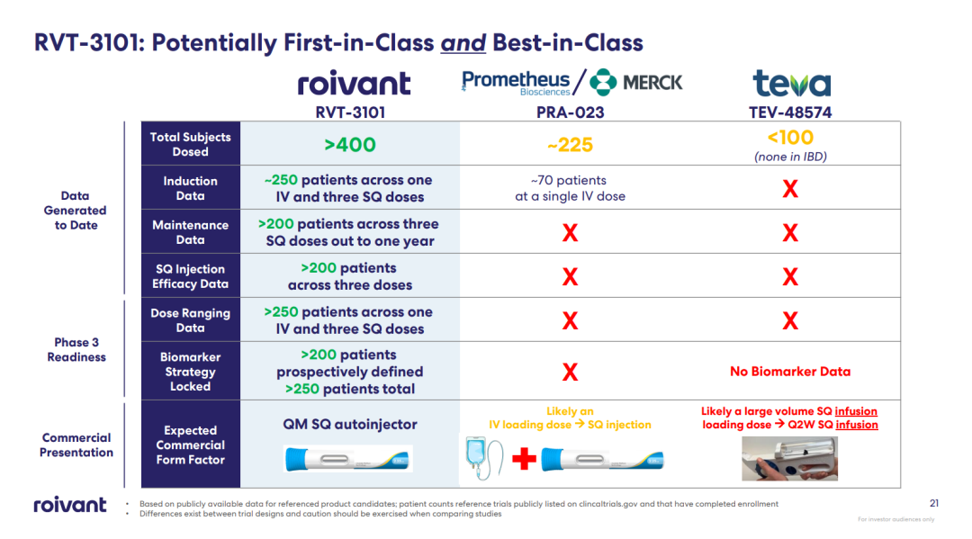 在Roivant公布的关于RVT-3101的研究报告中,有这么一页竞品分析。