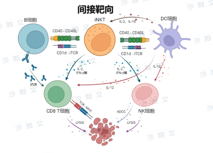 免疫系统在识别和攻击肿瘤细胞时,肿瘤细胞的变异和免疫逃逸机制极大地影响了治疗效果。而iNKT细胞可以同时激活先天性免疫和获得性免疫系统,激活抗原特异性的CD8+T细胞和NK细胞,同时靶向MHC阳性和阴性肿瘤细胞,克服因肿瘤细胞MHC下调导致的免疫逃逸机制。因此,理论上iNKT细胞能清除已产生肿瘤抗原的细胞和未产生肿瘤抗原的细胞,或新出现的变异肿瘤细胞,从而有望抑制肿瘤的恶化、转移及复发。