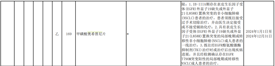 奥希替尼新增1项适应症纳入医保,由2项变为3项。
