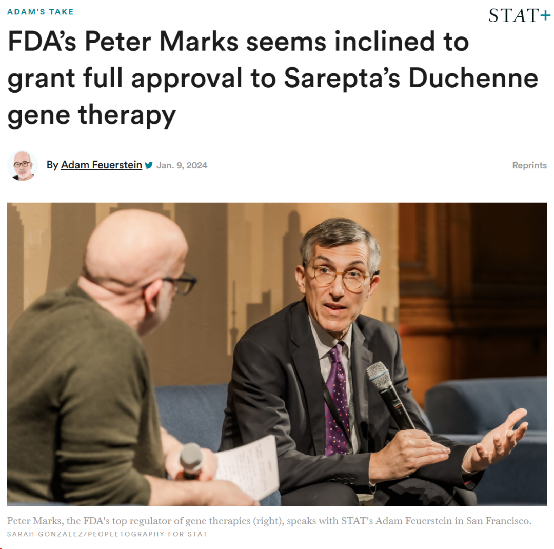 4.FDA’s Peter Marks seems inclined to back Sarepta’s gene therapy (statnews.com)