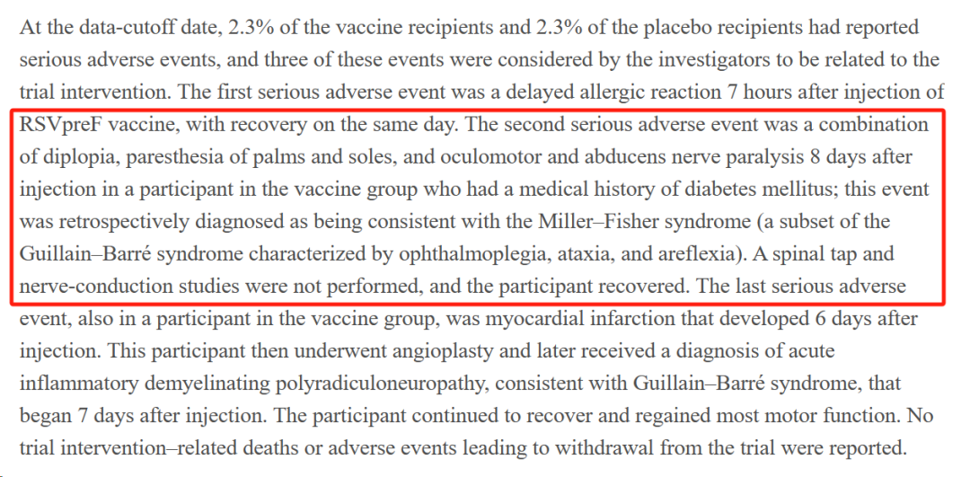 实际上此前在临床试验中已经发现了接种RSV疫苗后出现GBS的情况,这一风险已被纳入CDC的疫苗信息声明中,但仍不清楚是否是疫苗导致此类事件。