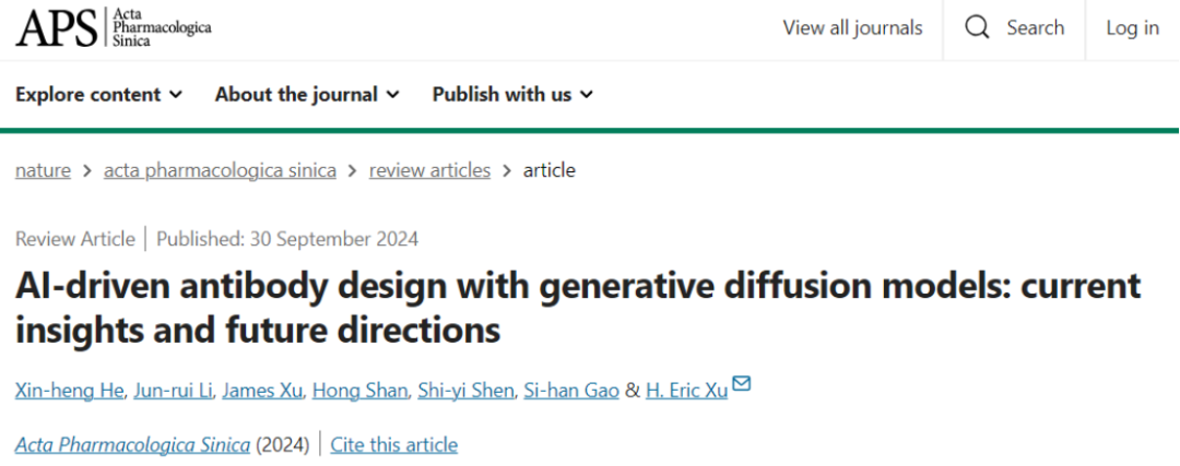 2024年9月30日,中国科学院上海药物研究所徐华强团队在Acta Pharmacologica Sinica发表了综述文章“AI-driven antibody design with generative diffusion models: current insights and future directions”。本综述总结了扩散模型在AI辅助抗体设计中的应用,包括抗体的从头设计、已有抗体结构的优化、以及相应的实验评测方法,系统地总结了基于扩散模型的抗体生成领域的研究进展,并为进一步改进针对抗体设计的扩散模型提供了参考。