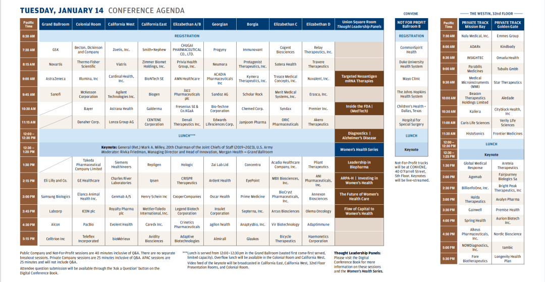 以下为2025年摩根大通医疗健康大会议程安排情况:
