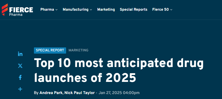 Top 10 most anticipated drug launches of 2025 (Fierce Pharma)